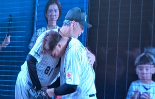 息子さんが見てる前で監督と涙の抱擁