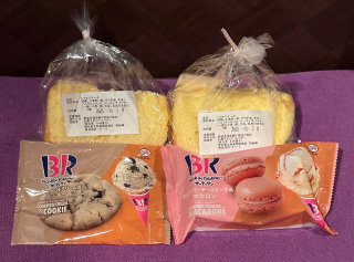 シフォンケーキにクッキーにマカロン…クッキーとマカロンはサーティーワンと不二家のコラボ商品🍪昨日、帰ってからシフォンケーキ一家とクッキーをいただきました😋フワフワのシフォンケーキ、クッキーはサーティワンのクッキーアンドクリームの味、どちらもめちゃくちゃ美味しい🤣