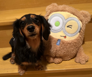 ユーホーキャッチャーが大好きなY様、大好きだけじゃなくて…取るのがめっちゃ上手い👍うちのワンコ達のおもちゃに…とぬいぐるみを取ってきてくださいます🧸前回はアンパンのぬいぐるみ、今回はミニオンのぬいぐるみ🧸しかもデカい…うちのワンコ達の中で一番小さい5代目と同じくらいの大きさ😲そんな大きなぬいぐるみとワンコ、遊んでます