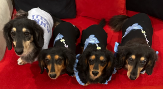 昨日の昼間は春…ポカポカ陽気、お部屋の暖房もいらないくらい🌸今朝早朝は冷えましたが、昼間は昨日と同じくらい暖かい☺️ワンコ達もモコモコの服では暑いかなと思い、春服にしました