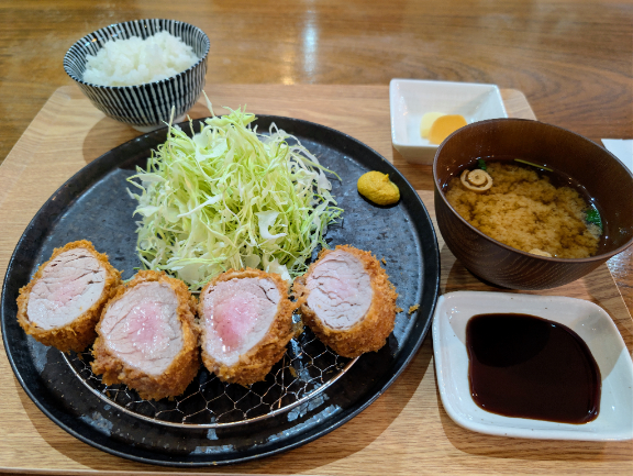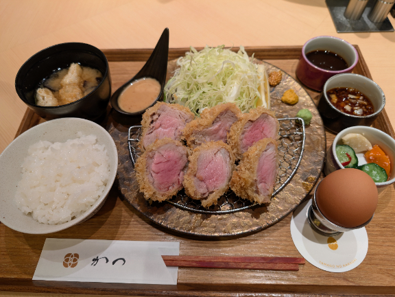 御器所𓃟ヒレかつ部位はシャトーブリアンしっかり火が通っていてジューシーさに欠ける。甘みなしのサラッとしたソースも合わなかった。基本、塩で食べるので関係ないけど…😏