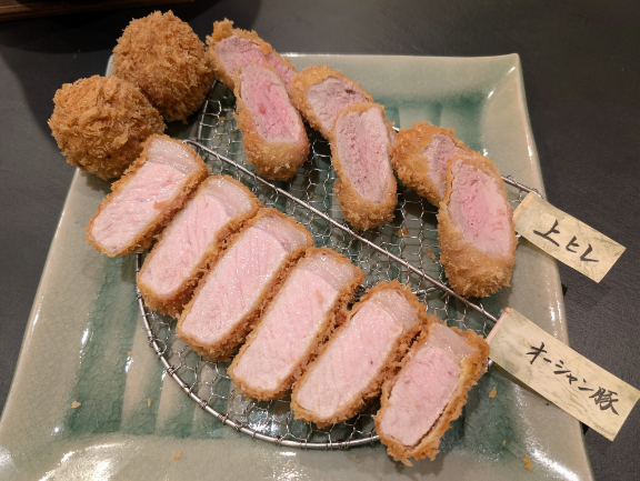 金山𓃟ヒレかつ予め低温調理したチャーシューを薄衣で極短時間サッと揚げたタイプ。サクッとした薄衣は好み。しかしこれは、、、。肉の臭みも少々。