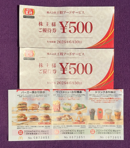 いつも待ってきてくださる差し入れ…訳あってお見せすることができなくて残念ですが、とてもありがたく使わせていただいてます😊今回はいつもいただく差し入れにプラス、王将とマックの優待券もいただきました