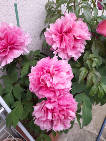 少しでも花持ちが良くなれるように雨避けに牡丹と芍薬を軒下へ移動